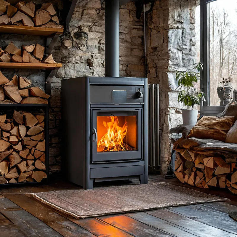 Компактная печь для отопления. Привлекает внимание многих покупателей тем, что проста в установке и настройке, поверхность легко очищать от загрязнений. В качестве топлива преимущественно используют дрова.