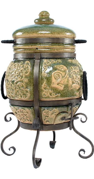 Тандыр покрыт глянцевой глазурью с орнаментом.