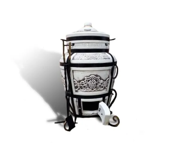 Утолщенные стенки тандыра – 6,5 см и не широкое горло сохраняют тепло по максимуму. Мясо готовится в течение 20-25 минут. И, о чудо! – над ним не надо нести дежурство, еда не подгорит.