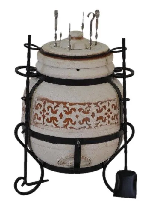 В комплекте: шампура из нержавеющей стали толщиной 1,5 мм – 6 шт.; колосник стальной – 1 шт.; комплект для чистки топки (совок – 1 шт., кочерга – 1 шт.); инструкция по эксплуатации.